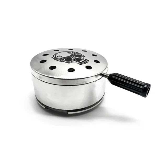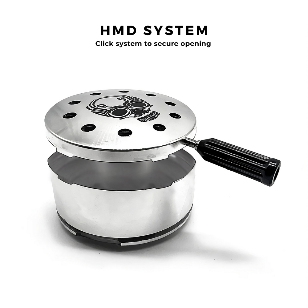 The Skull HMD manager features an innovative design with different air inlets and a glossy finish. It has a lid to preserve heat and a skull design on the lid.